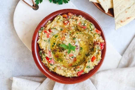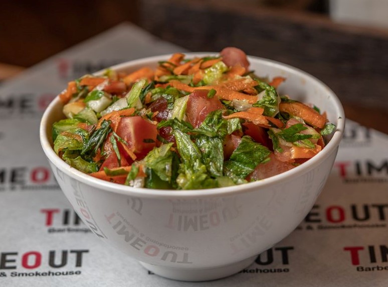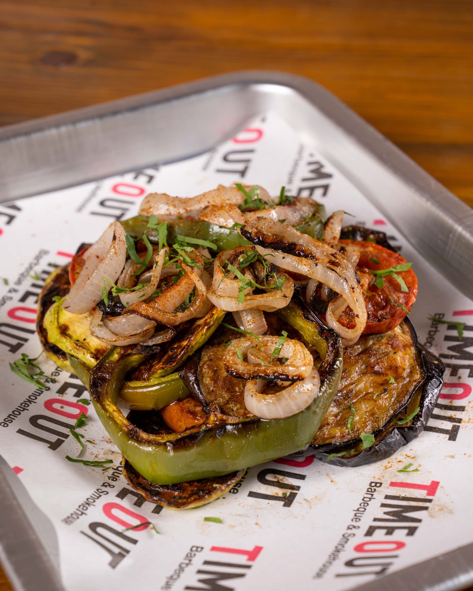 صحن خضار مشوي ( بصل والبقدونس - فلفل أخضر مشوي - كول سلو - مخلل - صوص طحينة وخبز باربيكيو)
