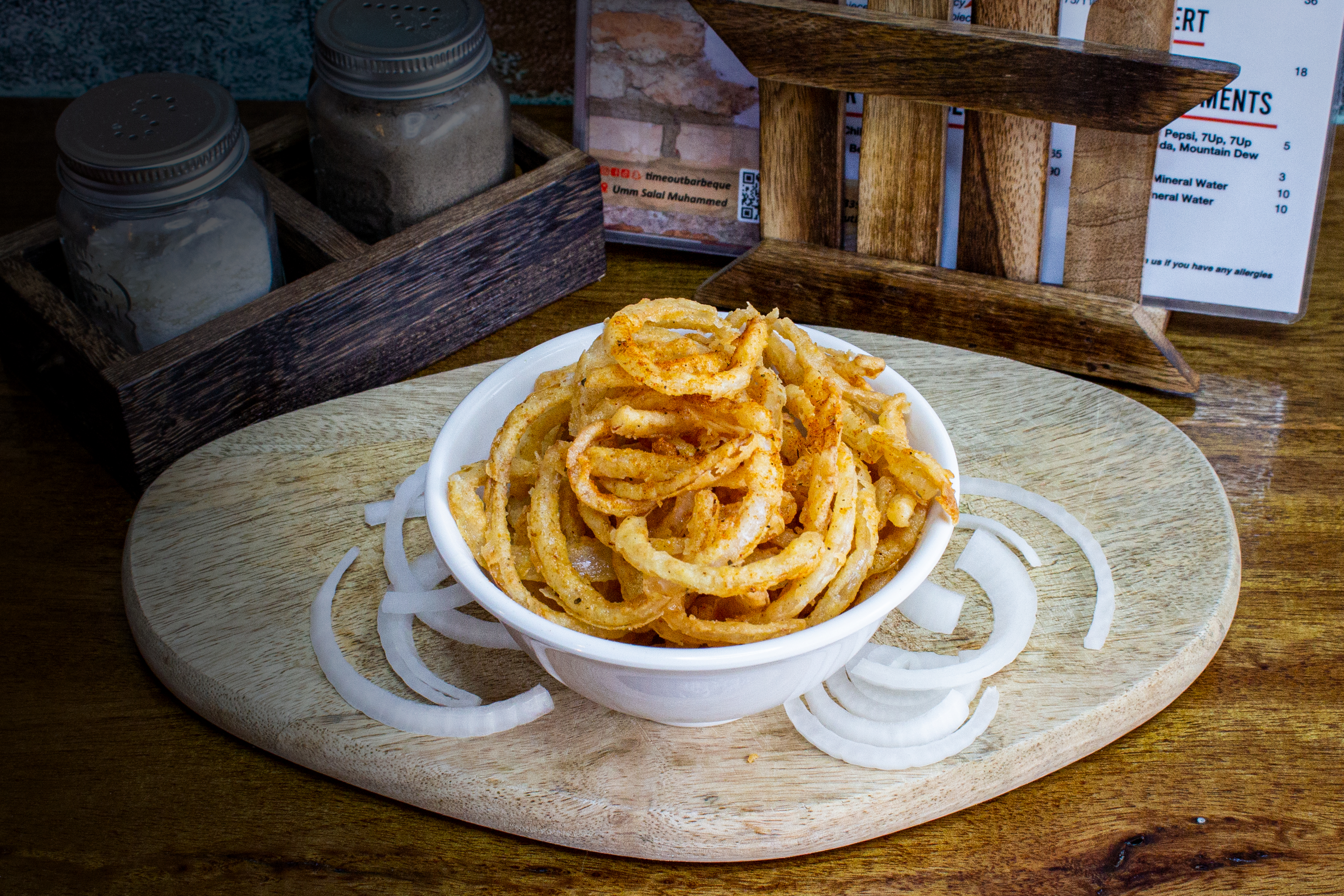 صحن جوانح (هاوس باربيكيو) (بقدونس والبصل - فلفل أخضر مشوي - بطاطا مقلية بالبهارات الكايجون - كول سلو - مخلل - خيارات متنوعة من الصلصات وخبز باربيكيو)