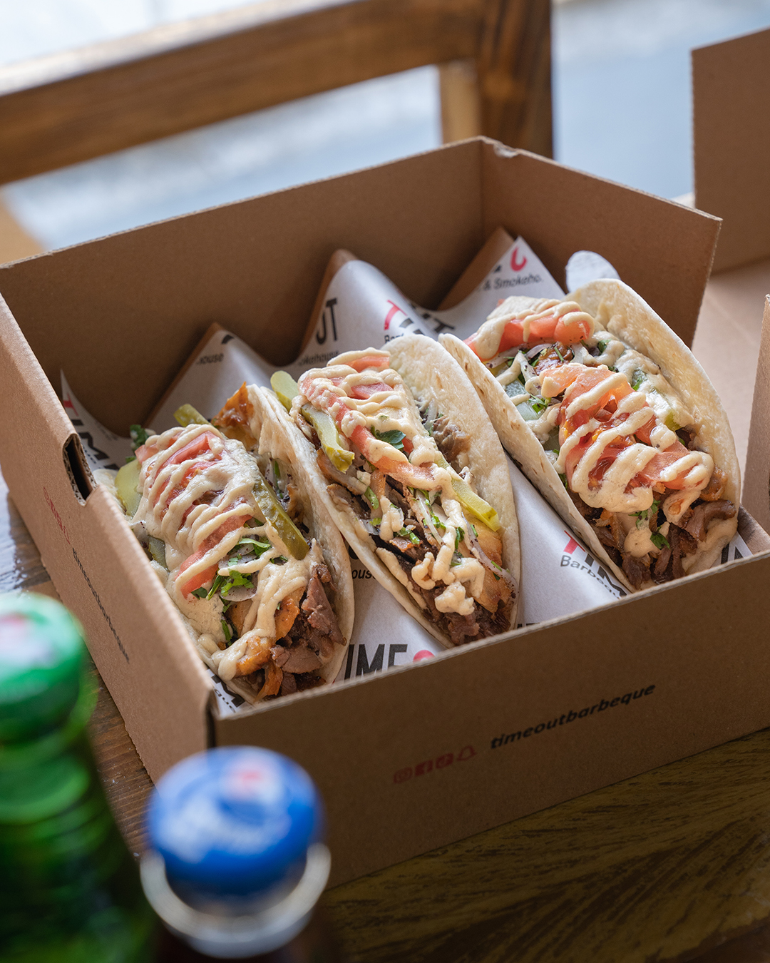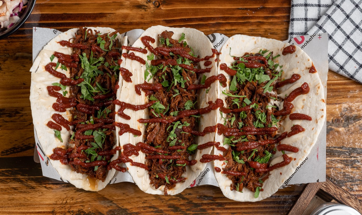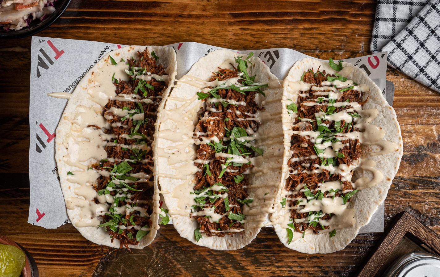 تاكوز لحم بريسكت مسحب × 3 (طحينة - بقدونس و صوص باربيكيو)