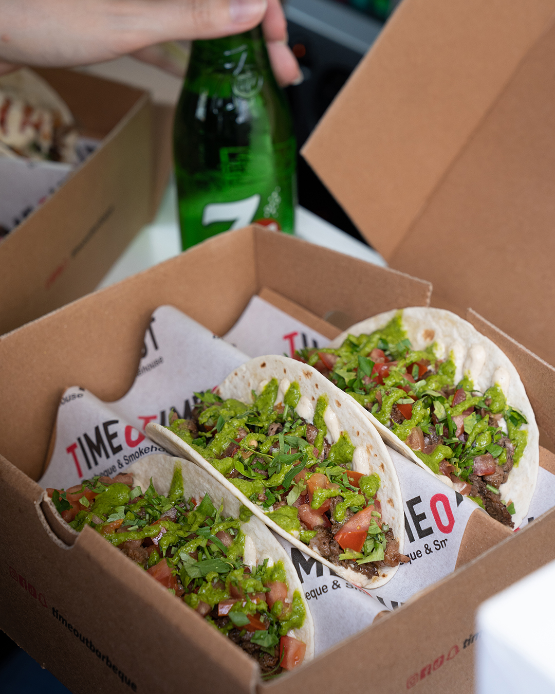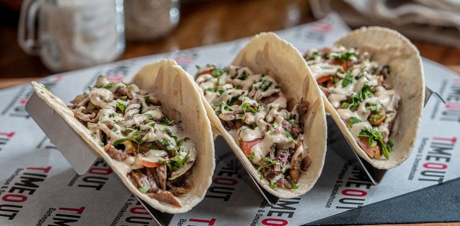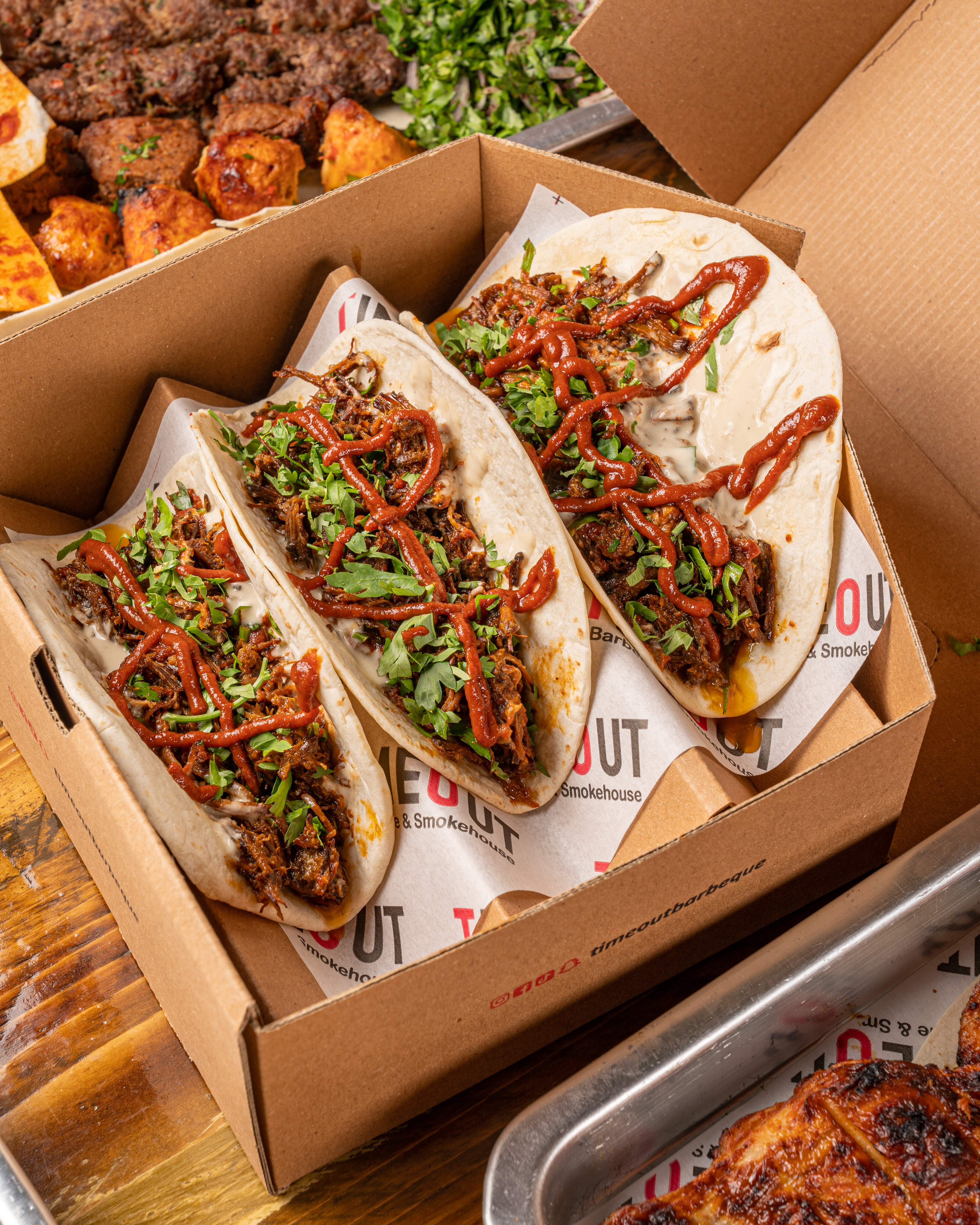 تاكوز لحم بريسكت مسحب × 3 (طحينة - بقدونس و صوص باربيكيو)