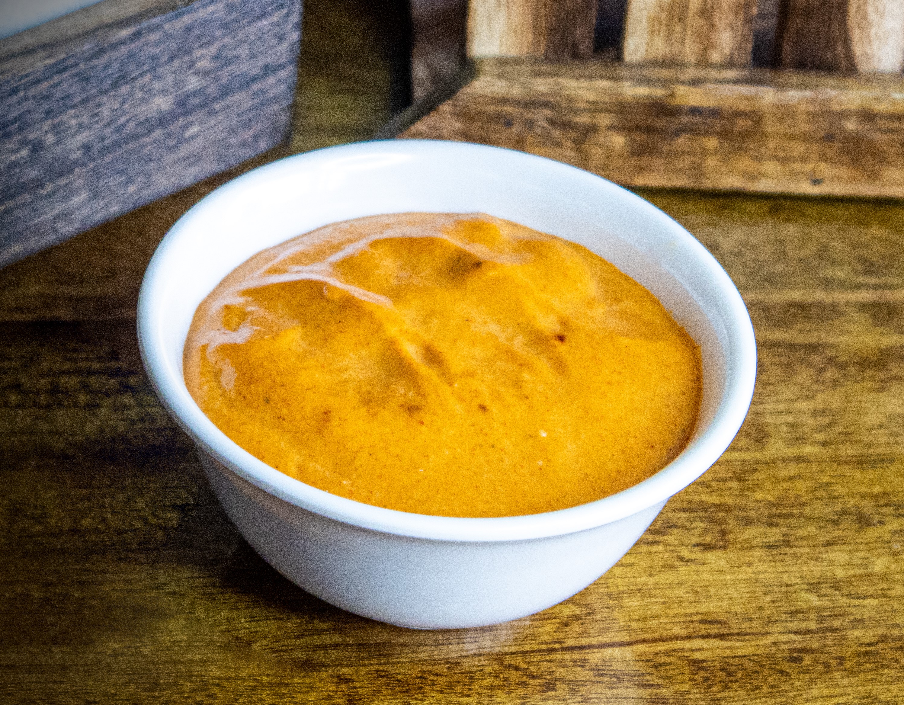 كريم الجبنة + جبن بارميزان مبشور + صوص تشيميشوري + بهارات الكايجون ورشة بقدونس